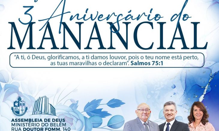 Neste fim de semana, dias 23 e 24 de novembro, acontecerá o 3º aniversário do Conjunto de Irmãs Manancial na Assembleia de Deus Ministério do Belém. Será um momento especial de gratidão e comunhão entre os irmãos!